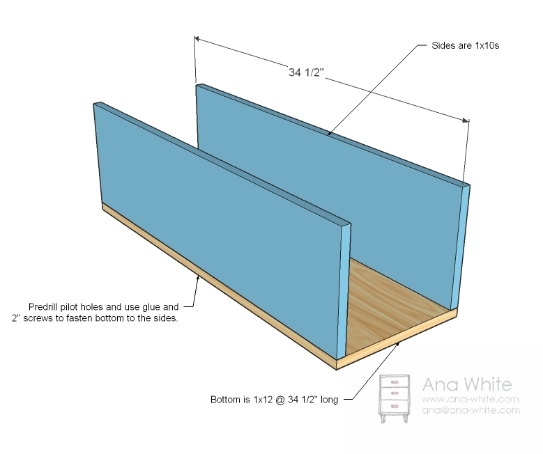 Uzmite preostalu 1×12 dasku i 1×10 dasku. Izrežite sledeće delove za bazu: