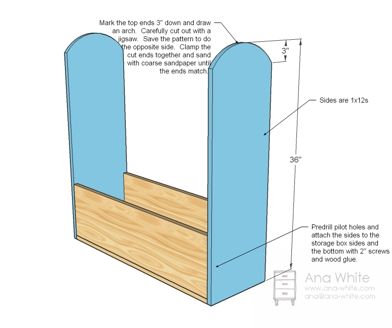 Sada je vreme da spojite glavne bočne strane garderobera (one sa lukovima) sa bazom. Postavite svaku bočnu stranu na ivicu baze, pazeći da su poravnate sa spoljnim ivicama baze. Ponovo, bušite pilot rupe kroz bočne strane baze u debljinu vertikalnih bočnih stranica. Koristite 2-inčne vijke i lepak za drvo za čvrsto spajanje. Preporučuje se da koristite 3-4 vijka po strani kako biste osigurali maksimalnu stabilnost. Proverite libelu da biste bili sigurni da su vertikalne stranice ravne pre nego što zategnete sve vijke do kraja.