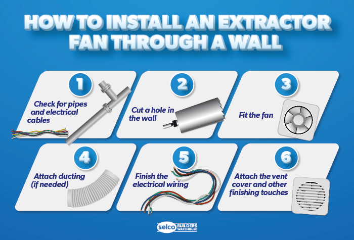 Zidna ugradnja je najčešća opcija za aksijalne ventilatore i kupatila sa spoljnim zidom. Ključni korak je pravilno bušenje rupe kroz zid.