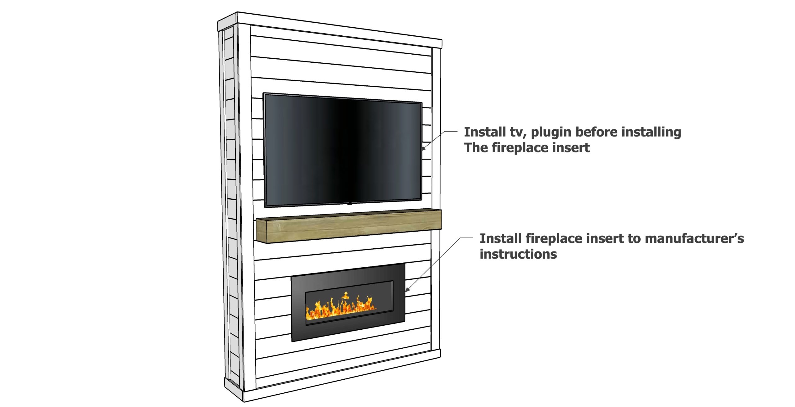 Montaža Shiplap ploča i kamin grede od 137 cm